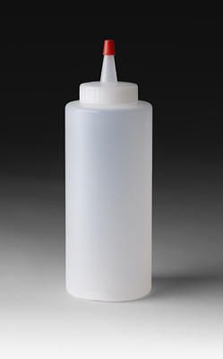 Ketchup style squeeze bottle. Includes spout top. Use for dispensing compounds, glazes, polishes and liquid wax. Can also be used to dispense solvents to clean spray gun in 3M™ Paint Preparation System.