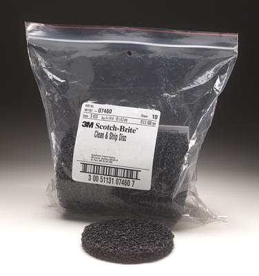 Makes surface preparation fast and easy. Great for removal of undercoatings. stone guards. seam sealers and rust. Works well under hood webs. in truck beds. door jambs. under carriage and wheel wells. Mounts onto 3M™ Mandrel 07491. 4 in x 1/4 in 10 discs per bag