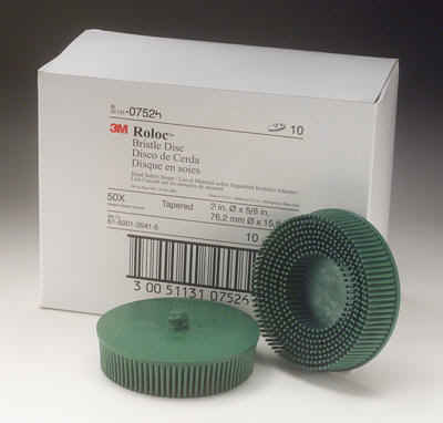 The ideal tool to replace scraper. wire wheels and chemical gasket strippers. Best used on harder metal such as steel. No wire to fly back at the operator. MOS 25.000 RPM. Use with 3M™ Roloc™ Holder 05539. Green 2 inch Coarse 10 discs per box