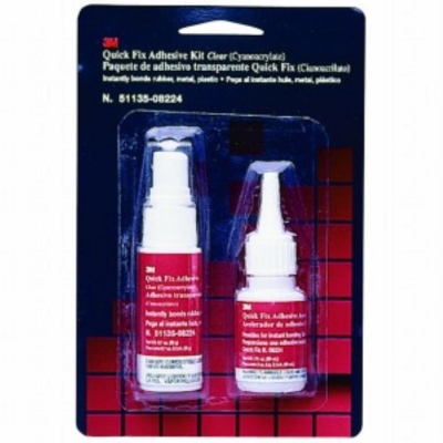Cyanoacrylic adhesive kit used to bond rubber, metal and plastic. The accelerator, included in this kit, provides nearly instant bonding plus added strength. Ideal for extremely quick, easy repairs of small pieces.