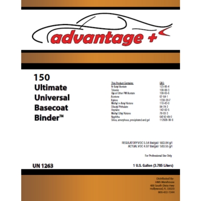 150 Advantage+ Ultimate Universal Basecoat Binder™ has been formulated as comparable offerings for the most common major manufacturer's products. Since these are similar products, they are intended for use in a comparable manner as the color formula indicates. 150 Advantage+ Ultimate Universal Basecoat Binder™ has been developed to provide similar physical properties of their competitors including viscosity, solids, weight per gallon, and basecoat compatibility.