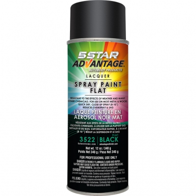 3522 Lacquer Spray Paint Flat Black Aerosol - 12oz