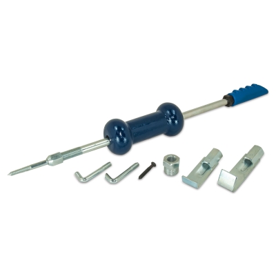 A highly versatile tool with slide-action reverse hammer. Self-tapping reversible sheet metal screw does not need a starter hole in the dent area.