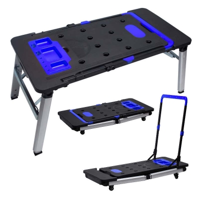 - 7 different functions including: workbench, saw horse, scaffold, platform, car creeper, dolly and hand truck