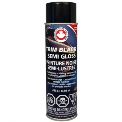 Dominion Sure Seal’s Trim Black (semi gloss and flat black ) trim paints will restore faded and peeling paint from exterior trim parts. This product actually self etches to ensure proper bonding to the substrate. If surfaces are properly cleaned, Trim black offers superior adhesion to metal, stainless steel and chrome