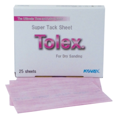 SUPER-TACK Tolex is ideal for light topcoat sanding in removing minor over-runs and small dust nibs. Highly effective dry lubrication process allows minimum clogging, thus increasing sanding life and productivity. Utilizing the most uniform abrasive minerals and state of the art coating technology, SUPER-TACK Tolex system can achieve topcoat finishes more uniform than any other dry sanding system ever has before. Discs are recommended to use with hard interface pad (p/n 971-0042 or 971-7052) and sheets to use with interface pad (p/n 971-0035) and foam block (p/n 00212).