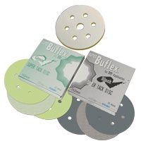 Buflex Super-Tack Discs - DRY An innovative new Dry sanding and polishing system that promises to cut long buffing time by 50% or more. Buflex system combines an ultra-flexible latex abrasive film and a specially designed soft pad to remove topcoat-sanding scratches effectively and efficiently. The finish left behind by Buflex can be polished easier than grit P3000 or finer. Buflex has proven that compound polishing processes can be largely reduced and thus achieve the best finish in the shortest time.