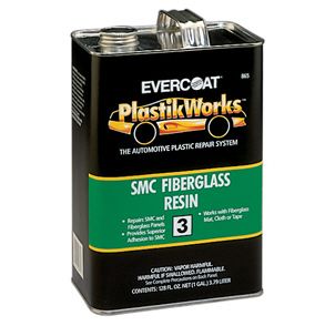 Superior adhesion to all types of SMC and fiberglass. SMC resin is a polyester-based resin used for repair of SMC and fiberglass panels and parts. More effective on SMC than conventional fiberglass-type resins. Formulated to use with fiberglass mat, cloth and tape. Waterproof and impact resistant. Working time of 20-30 minutes. Cures to a sandable surface much faster than regular fiberglasss resin. White cream hardener included. NOTE: Correct catalyzation and thorough mixing are necessary. Read directions on can thoroughly.