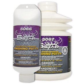 5 STAR AUTOBODY PRODUCTS - Premium Polyester Finishing Putty is effortless to spread and self-levels to a smooth, easy-to-sand surface that is pinhole free – improving your cycle time. The advanced easy-powder formula increases the sanding window. #5066 & #5067 provide excellent results for that invisible repair every time whether over body filler, sand scratches, pinholes, aged OEM topcoats, steel, aluminum, galvanized and other zinc-coated metals, fiberglass and a wide variety of other substrates.