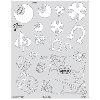 Luck is out there ...there is just no telling what kind. Now you can make your own luck (at least with an airbrush)! Now what do spider webs have to do with luck? Well ...nothing. But they are kewl, and it's my stencil, so I put them in! Officially, I have now decided that spider webs are lucky. Artool lays no claim to this stencil having special lucky powers or having allowed anyone to achieve god-like status in Vegas ...but then again, they have only just been released. Hmmm....