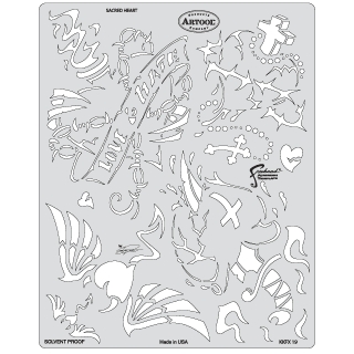 We cannot cover the whole gamut of the kustom kulture without a salute to the tattoo "flash" artists out there. The "Sacred Heart" gives you a nice selection of tattoo-style hearts. Makes ya wanna run out and get yourself sleeved! Go ahead and find the seamiest hole-in-the-wall tattoo parlor, and whip these out for the tattoer to use on you! Remember: he may beat you senseless Û|but he will respect your taste in art, and probably keep your stencils.
