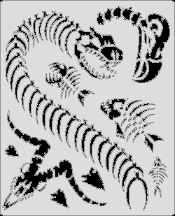 Everyone loves petting zoos. Birdies, snakes, fishies and goats are the kids favorites. Now visualize all the fun of the local petting zoo, but without the skin! Just imagine those eyes lighting up when you start airbrushing the skeletons of their favorite pets. Great for parties, body painting, and of course, wedding cakes. It just shows that when you run out of things to do with the human skull, you can always find others to make stencils of.