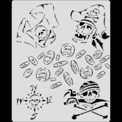 For everyone out there that finds the word ""Arg,"" ""Avast,"" and ""Me hearty"" constantly popping up in their vocabulary, Buccaneer is for you. Eryol Flynn addicts everywhere will be thrashing each other to get to these babies. Whether you have always found the pirate style of art endearing, or were just traumatized as a child on Pirates of the Caribbean, this is your stencil. Buccaneer is excellent for use on everything from kustom graphics, to body art, to that paper hat you wear when you run through the office cubicles pillaging.