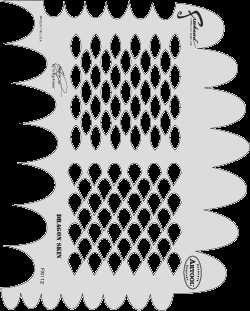 Scale new depths with the stencil ideal for producing snake- and lizard-style skins with the inner patterns, while the outer shapes are reserved for sequential layering of scales. With the built-in curve, they are perfect for turning corners and creating 3-D visuals