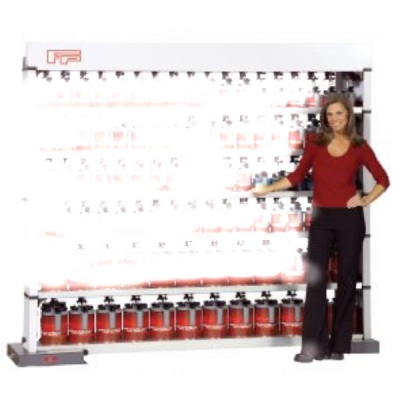 The QM220 version is a full-sized mixing machine with a maximum capacity of 126 quart or 84 gallon containers. Mixing shelves are available as 12-place gallon/3.5-liter or 18-place quart/liter. Order a Quick-Mix 220 Plus Base and motor assembly and up to 6 mixing shelves to reach the desired configuration.