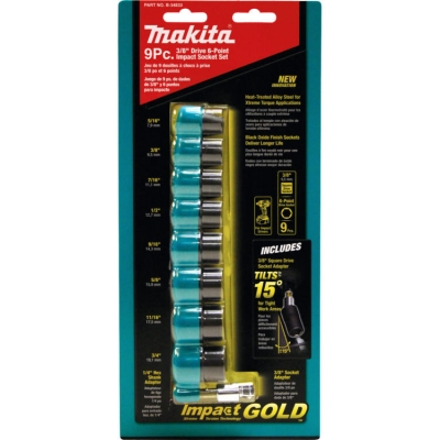 MAKITA IMPACT GOLD 9 pc 3/8" Drive Socket Set with 15 Degree Tilt Socket Adapter