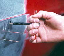 A compact tool for small damage repair on lightweight metal to reduce overpull.
