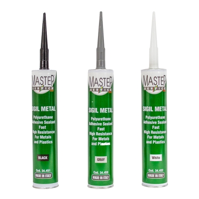 Sigil Metal: High performance polyurethane adhesive sealant. Extremely versatile, it ensures short time application. Overpaintable. Available in Black, White, Grey colors.