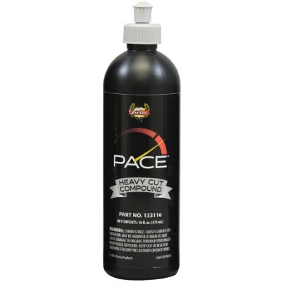 PACE™ Heavy Cut Compound is a correcting and polishing compound that removes up to P1500 sand scratches and polishes to a deep gloss in one step. For best results, use with the PACE™ Grey Foam Heavy Cut Pad for softer clearcoats or the PACE™ Purple Foamed Wool Heavy Cut Pad for harder clearcoats.