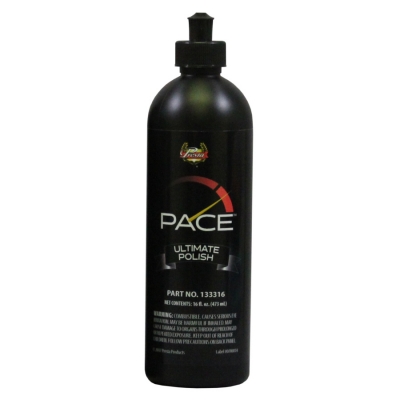 PACE™ Ultimate Polish is a finishing polish to be used as a final step after using PACE Heavy Cut Compound or PACE Medium Cut Compound to achieve a deep, show-car-level gloss. It can also be used as a one-step finish for enhancing the appearance of a vehicle where light correction with a deep gloss is desired. For best results, use with the PACE™ Black Foam Ultimate Polish Pad.