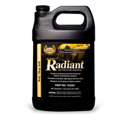 Non-silicone, ready-to-use dressing specially formulated for body shops. Restores rich colors and gloss to surfaces faded by exposure to sunlight and weathering.