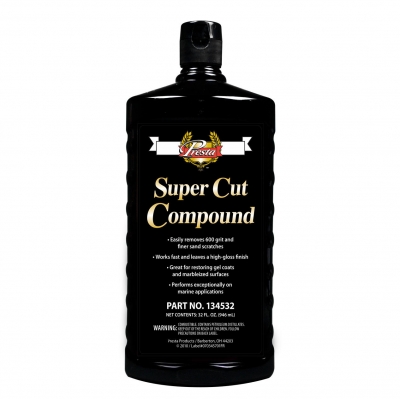 Super Cut Compound makes quick work of heavy scratches and oxidation on both gel coat and clear coat painted surfaces. Use with a 100% twisted wool cutting pad to leave a high-gloss finish.