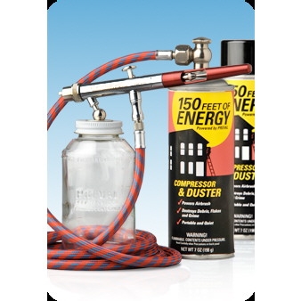 Made in the USA, it serves diverse markets, including the appliance, automotive, aerospace, arts, bookbinding, craft and hobby, container, converting, electronics, food and beverage, furniture, home improvement, life sciences and medical, light emitting diodes (LED), metal finishing, marine, new home resurfacing, non-woven, packaging, scrap booking, semiconductor and solar energy and textile industries. The complete vFan System includes the vFan Airbrush (made from Stainless, Brass and with added coatings to protect against solvents), 6' air hose, 2 portable units of 150 Feet of ENERGY, air regulator, fan air cap, standard air cap for detail, additional needles, multiple product containers, dip tubes, a bilingual instruction manual and so much more!