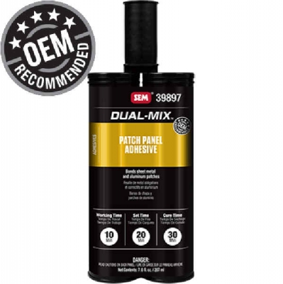 Dual-Mix™ Patch Panel Adhesive is a two-component adhesive for quickly bonding metal panels without the use of an external primer.