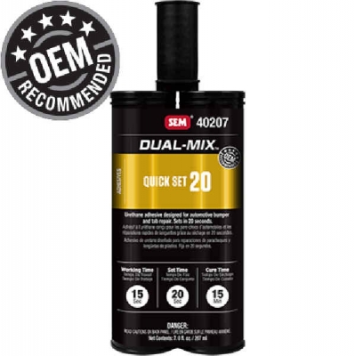 Dual-Mix™ Quick Set 20 is a fast, two-component, opaque, urethane adhesive designed for bumper tab repair and bonding most small plastic, steel and aluminum parts.