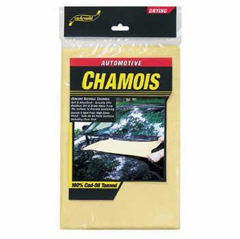 Imported Leather Chamois 100% cod oil tanned. Tanned from select sheepskins to provide a fine quality, general-duty chamois for autos and other cleaning jobs around the home. Attractively packaged.
