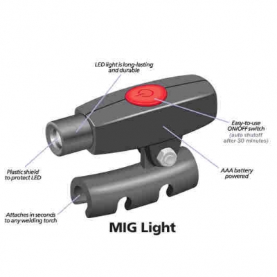The MIG Light's focused beam saves time and frustration when welding out of position.
