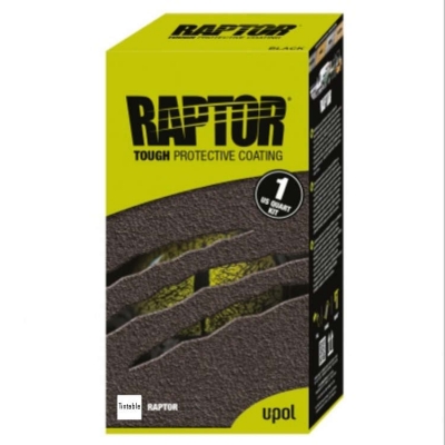 The 1 US Quart Raptor Kit is ideal for smaller applications and touch-ups. Each kit contains 1 sprayable quart of Raptor for about 30 square feet of coverage. Compatible with both Raptor Schutz and Professional Vari-Nozzle application guns.