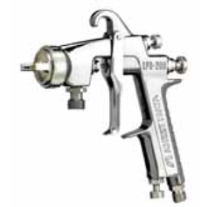 This heavy-duty lightweight pressure feed HVLP spray gun is supplied with a standard spray set-up for industrial applications and higher viscosity materials.